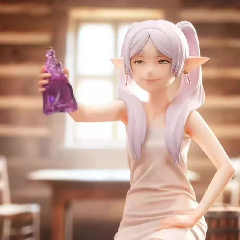 The Frieren potion figure recreates a gentle anime scene where Frieren calmly offers a potion, capturing the quiet tone of Frieren: Beyond Journey’s End. Unlike combat-focused figures, this design centers on interaction and storytelling. Frieren’s relaxed posture, casual dress, and outstretched hand make the figure feel personal and alive, as if she is directly engaging with the viewer. The potion bottle is not just an accessory, but the focal point of the scene, making this figure instantly recognizable to fans of the anime.